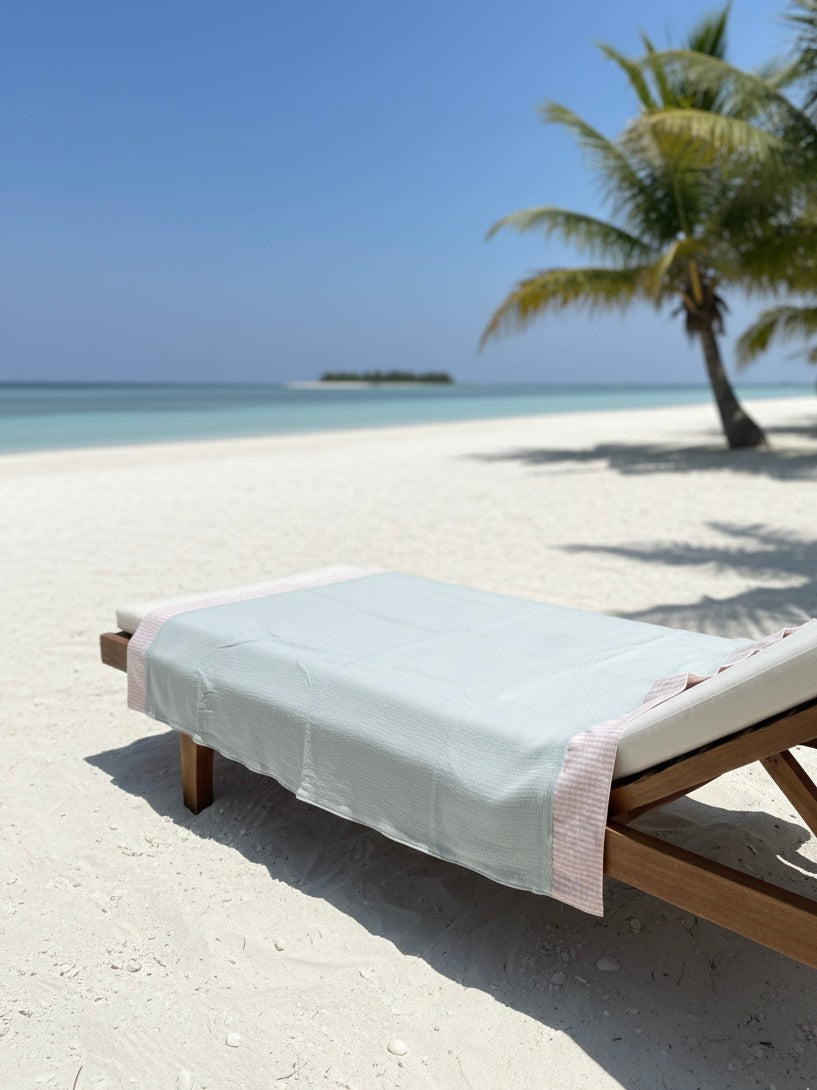 Rifinito con dettagli a contrasto sui lati, unisce praticità e design delicato. Facile da trasportare, è perfetto per spiaggia, piscina o picnic all’aria aperta. Ogni telo è curato nei dettagli e rifinito con amore.